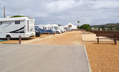 Heading west along the Algarve is the large city of Portimao, the Aire is situated right beside the Marina end of the resort and at €5.50 a night including electric we couldn't miss this one! Water is charged seperately here and is €2 per 120litres and once you put the coin in you get 120 litres whether you need it or not! Bessie holds 110litres so we had a watering can and empty water bottles at the ready!